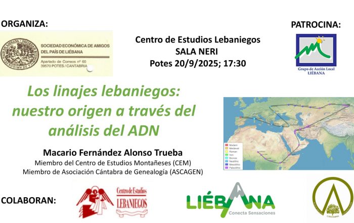 Liébana2025-09-19T12:10:47+02:00Jornada sobre los linajes lebaniegos y su historia a través del ADNLiébana2025-09-19T12:10:47+02:0019 / 09 / 2025|
