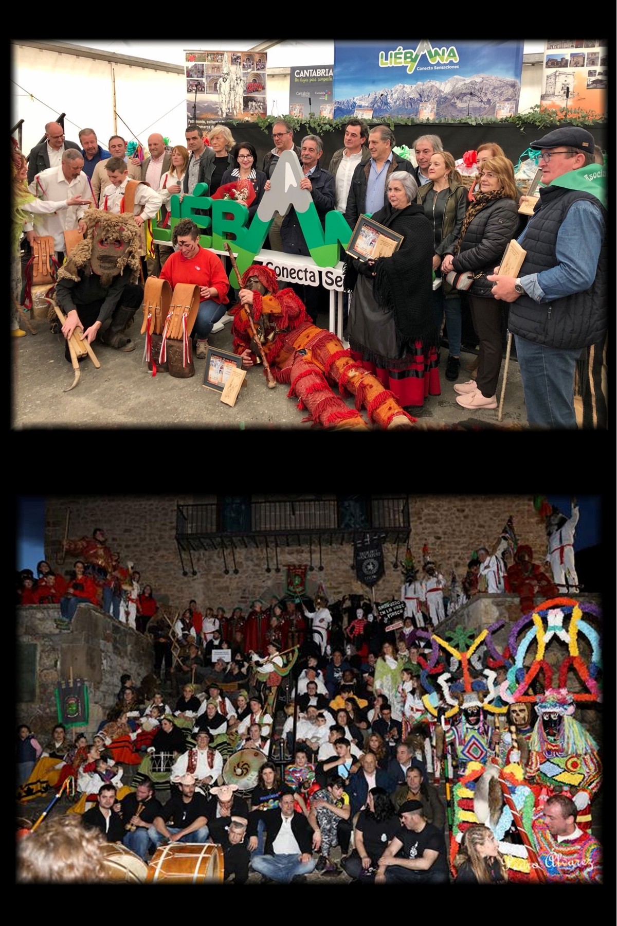 Liébana2020-02-19T12:58:37+02:00El sábado 15 de Febrero se celebró el Carnaval de Piasca en el municipio de Cabezón de Liébana con una gran afluencia de público. El acto fue presentado por la periodista Dª. Marga Pereda acompañada del Presidente de la Asociación Andruido en la Paré de Piasca, D. Ismael Blanco. Para comenzar, se dio lectura del pregón seguido del tradicional recorrido del Andrudio en la Paré de Piasca desde los “Praos de los Llanos” hasta la Iglesia de Santa María La Real, con la participación de los personajes que protagonizan la mascarada (zamarrones, campaneros y el oso). A continuación, la Consejera de Educación, Formación Profesional y Turismo, Dª Marina Lombó, y el Director del Área de Desarrollo Rural de la Fundación Botín, D. José María Ballester, fueron nombrados “Socios de Honor” de la Asociación “Andruido en la Paré de Piasca”. Además, D. Vidal Roiz, vecino de Piasca, fue reconocido con el título “Campaneru de la Paré” por su contribución a la conservación del Carnaval de Piasca. Todas las asociaciones participantes: la Cofradía del Aguardiente de Orujo y Vino de Liébana, el Aula de Cultura Tradicional del Valle de Camaleño, los Caretos de Parada (Portugal), los Diablos de Luzón (Guadalajara), los Fulions Rurais y Botiros de Viana do Bolo (Ourense), el Atenazador de San Vicente de la Cabeza (Zamora) y la Banda de Gaitas Peña Gedio (Cantabria), recibieron un obsequio, al igual que D. José Ramón Almirante, quien recibió una mención especial por su contribución a la conservación de las tradiciones lebaniegas. Por otra parte, los Ayuntamientos de Liébana han colaborado entregando cada uno de ellos un campano artesanal con el fin de poner en valor dichos carnavales. Entre las autoridades presentes en la fiesta se encontraba el Presidente del Gobierno de Cantabria, D. Miguel Ángel Revilla; la Consejera de Educación, Formación Profesional y Turismo, Dª Marina Lombó; la Vicepresidenta del Parlamento de Cantabria, Dª. María José González; la Diputada Regional, Dª. Mª. Isabel Urrutia; la Directora General de Turismo, Dª. Eva Bartolomé; el Director General de Cantur, D. Bernardo Colsa; el Presidente del Grupo de Acción Local Liébana y Alcalde de Vega de Liébana, D. Gregorio Miguel Alonso; el Alcalde de Cabezón de Liébana, D. Jesús Fuente; el Alcalde de Potes, D. Francisco Javier Gómez; el Alcalde de Pesaguero, D. Enrique Sabarís; el Alcalde de Cillorigo de Liébana, D. Jesús María Cuevas; el segundo Teniente de Alcalde de Camaleño, D. Juan José Torre; el Presidente de la Mancomunidad de Liébana y Peñarrubia, D. Julio Cires; el Presidente de la Red Cántabra de Desarrollo Rural, D. Leoncio Carrascal, y el Gerente de la Fundación Camino Lebaniego, D. Manuel Bahillo, junto con otras autoridades y representantes de otros carnavales tradicionales de España, así como numerosos visitantes. Durante la jornada, adicionalmente a las mascaradas, el desfile de campaneros y zamarrones y las comparsas, se realizaron otras actividades como una ruta de senderismo, una visita a la iglesia de Santa María la Real de Piasca, declarada Monumento Nacional en 1930, una exposición fotográfica de las tradiciones y culturas arraigadas de la Comarca, actividades infantiles, sorteo de cestas con productos típicos de la Comarca, una comida popular, una degustación de té con orujo, pasacalles, actuaciones musicales y una verbena. El Carnaval de Piasca, organizado por la Asociación Sociocultural y Etnográfica “Andruido en la Paré de Piasca”, contó con la colaboración de la Consejería de Educación, Formación Profesional y Turismo, la Consejería de Universidades, Igualdad, Cultura y Deporte, la Consejería de Medio Rural, Ganadería, Pesca, Alimentación y Medio Ambiente, la Sociedad Regional de Educación, Cultura y Deporte, la Fundación Camino Lebaniego, el Grupo de Acción Local de Liébana, la Red Cántabra de Desarrollo Rural, los Ayuntamientos de Liébana y Peñarrubia y el Arciprestazgo de la Santa Cruz, además de casi un centenar de empresas patrocinadoras.