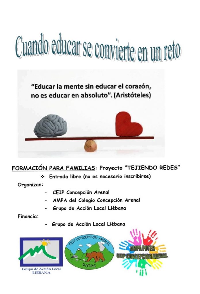 El Grupo de Acción Local Liébana junto con el C.E.I.P. Concepción Arenal de Potes y la Asociación de Madres y Padres de Alumnos del mismo realizarán en los próximos meses diversas jornadas de formación en Educación Emocional dirigidas a las familias del alumnado.